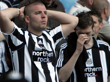 Spieler des Tages: Robert Green Spieltag 2 Tottenham 1 : 0 Newcastle 24' Defoe Im zweiten Spiel setzte es eine Niederlage für Newcastle. Obwohl man das bessere Team war blieb Newcastle der Ausgleich verwehrt und man musste die erste Niederlage einstecken. Die Partie begann gut für Newcastle. Nach nur sieben Minuten kam Carroll nach guter Kombination frei zum Schuss, zog aber knapp vorbei. Fünf Minuten später war es Neuzugang Maynard, der einen Kopfball an den Pfosten setzte. Nach 20 Minuten kam Tottenham zum ersten mal gefährlich vor den Kasten von Harper: Der schnelle Lennon umkurvte Simpson und flankte rein, Torhüter Harper verschätzte sich und kam nicht ran, sodass Jermaine Defoe nur noch einschieben musste – 1:0 für Tottenham! Newcastle zeigte sich geschockt, was der Hauptstadt-Club jedoch nicht nutzen konnte. Erst in der Schlussphase wurde es noch einmal gefährlich für die Spurs: Nach 72 Minuten dribbelte sich Ben Arfa durch die Abwehr des Gegners und steht frei vor Keeper Gomes, aber der Franzose nutzte die Riesenchance auf den Ausgleich nicht und zielte neben das Tor. Auch Carroll, der zehn Minuten vor Ende mit einem starken Kopfball an Gomes scheiterte, konnte die Niederlage nicht mehr abwenden.  Entäuschung bei den Newcastle-Fans nach der Niederlage gegen Tottenham Spieltag 3 Newcastle 3 : 0 Bolton 19' Gutierrez 44' Carroll 89' Nolan (P) Der dritte Spieltag bescherte den Toons den ersten Saisonsieg. In einer Begegnung, in der Bolton fast nicht zum Zug kam, gewann Newcastle am Ende verdient mit 3:0. Die Magpies begannen druckvoll und kamen nach 18 Minuten zur ersten guten Gelegenheit, die aber von Jääskeläinen aber klären konnte. Die anschließende Ecke von Kapitän Nolan landete bei Innenverteidiger Taylor, der wiederum auf Gutierrez ablegte. Diese Gelegenheit ließ sich der Argentinier nicht nehmen und netzte zur Führung für Newcastle ein. In der 44. Minute war es dann Andy Carroll, der auf 2:0 erhöhte und sein erstes Saisontor markierte. Das letzte Tor erzielte dann Kapitän Nolan höchstpersönlich in der 89. per Elfmeter. Am Ende konnte Newcastle im dritten Spiel endlich den ersten Sieg feiern.