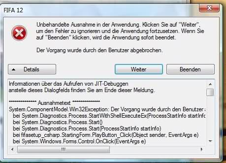ich drücke ''Starten'' & dann kommt eine Fehlermeldung ''Fifa 12 hat ein Problem festgestellt und muss beendet werden.''