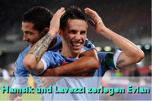 Dann wechselten die Gäste Youssef ging raus und Govou kam rein auch gleich bei Bento wurde gewechselt: Santana war angeschlagen und für Ihn kam Inler der zum teil gleich mit pfiffen begrüsst wurde von einigen Fans - ob dies sein letztes Spiel ist heute? Jedoch lief das Spiel wieder flüssiger mehr auch als in der 1. Halbzeit und Govou war mehrmals gezwungen weitschüsse zu schiessen jedoch ohne das Rui eingreifen musste. Hamsik der ein sehr gutes Spiel ablieferte war wieder frei nahm das Leder und spielte es auf denn freien Inler, der kurz einen Hacken schlug und von 27 Metern einfach draufhaute – Flach in das Linke Eck 3:0. Das war jetzt eine überraschung für einige Fans aber dennoch feirten die Süditaliener jetzt ausgiebig. In der 70 Minute war Inler wieder in der mitte Frei spielte auf Lavezzi, der zu einem Sololauf sprintete und dann denn herauslaufenden Durand umdribbelte und locker zum 4:0 einschiebte. Keine Chance in diesem Spiel für Evian. Napoli spielte einfach abgeklärter, solider und ist verdient mit 4:0 vom Platz weg.