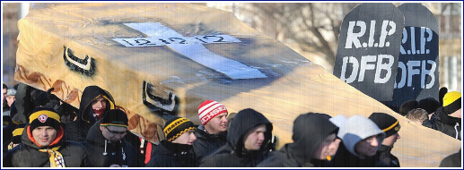 Besonders im Kreis des Deutschen-Fußball-Bundes ist der Verein schon bestens bekannt, eher im negativen Sinne. Pyrotechnik und Randale von ein paar Chaoten in Dortmund und Hannover brachten die Verantwortlichen schließlich dazu dem Verein das so dringende Geld für die so hochgelobte Jugendarbeit zu nehmen, indem sie Dynamo aus dem Pokal ausschlossen. "Wegen ein paar Chaoten werden die Vereine zur Rechenschaft gezogen. Wir werden das nicht auf uns sitzen lassen und werden dem DFB zeigen, dass die Fans von Dynamo Dresden lauter sind als der Großteil der Bundesliga!", so der Vorsänger der Dresdner Ultras Stefan Lehmann. Bereits von einem Geisterspiel gegen Ingolstadt ließ man sich nicht beeindrucken, kaufte sogar vierzigtausend Karten zum vollen Preis, ohne das Spiel sehen zu können. Vond er Innenstadt zog das 'Heer' zum Stadion und feuerte dort das Team lautstark an, was man bis auf den Platz hören konnte.