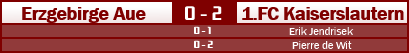 Doch nach dieser Pleite fingen sich die Roten Teufel wieder und siegten gleich zweifach. Erst traf man gegen den MSV Duisburg doppelt und blieb ohne Gegentor, dann siegte man auch bei Erzgebirge Aue mit demselben Ergebnis. Während im Heimspiel Azaouagh und Jendrisek trafen hießen die Torschützen im Osten der Republik de Wit und Jendrisek. Der Vorsprung auf den Nicht-Aufstiegsplatz beträgt nun komfortable fünfzehn Zähler.