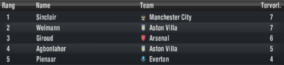 zweiten Mal für Aston Villa und bleibt mit dreizehn Saisontoren weiter vier Tore vor Fletcher (Sunderland) die Nummer Eins der Liga. Das war doch Mal ein Spiel, bei dem es wieder einmal deutlich wurde, dass ein Mann allein ein Spiel entscheiden kann. Dieser Mann heißt Ricky van Wolfswinkel.