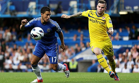 Cech - Azpilicueta, Ivanovic, Cahill, Cole - Luiz, Mikel - Oscar (Moses 67'), Mata (Lampard, 77'), Hazard - Torres (Ba, 26') Chelsea FC - Reading FC 0:0 Als nächstes, am eigentlichen ersten Spieltag, war man zu Gast bei Wigan Athletic, die auch diese Saison wieder zu den Abstiegskandidaten zählen. Im DW Stadium spielte Chelsea jedoch erneut nur 0:0. Wie schon gegen Reading stand der Gegner hinten sich und ließ kaum Chancen zu. "Die Tore werden schon noch kommen. Unsere Offensive ist noch nicht eingespielt, aber die Qualität ist da. Wenn die Mechanismen dann erstmal laufen, werden auch Tore fallen. Man darf aber auch nicht vergessen, dass wir bisher auch zweimal ohne Gegentor geblieben sind.", wird Mourinho zitiert.