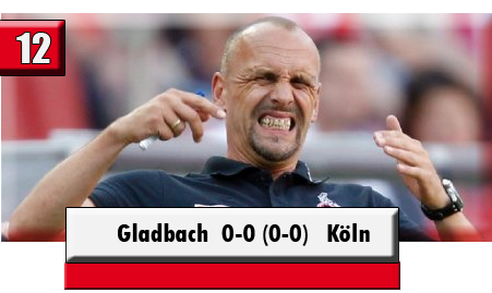 Ein ungleiches Derby endete mit einer Punkteteilung. Ungleich, weil Köln von Beginn an die überlegene Mannschaft war, was sich auch an den erspielten Chancen ablesen lässt. 6 zu 1 Chancen hieß es am Ende für den 1.FC Köln. Vor Allem der in die Startelf gerückte Chihi überzeugte, doch vergab einige Chancen (21‘ | 54‘). Auch die Stürmer Steffen (30‘) und Wallyson (77‘ | 80‘) konnten ter Stegen nicht überwinden. Die einzige Chance der Gladbacher hatte Mlapa nach 60 Spielminuten, doch auch Yabo (90‘) hätte mit dem Schlusspfiff einen euphorischen Jubel auslösen können.  Aufstellung: Horn - Contento|Heintz|Knoche|Vargas - Matuschyk - Chihi|Schindler - Clemens - Jankowski|Wallyson
