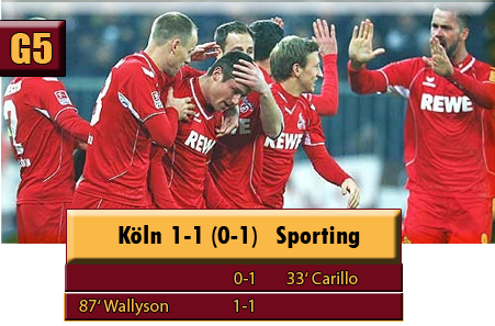 Mit einem Sieg gegen Sporting Lissabon zu Hause könnte der 1.FC Köln den ersten Platz bereits vor dem letzten Gruppenspiel sichern, doch am Ende reichte es – wie schon im Hinspiel – zu einem 1-1. Dieses Mal gingen jedoch die Portugiesen durch Carillo in Führung. Wieder war Horn der Sündenbock, indem er bei einem Abwurf den Gästestürmer abwarf, der danach freie Bahn hatte und einnetzte. In den darauffolgenden Minuten rechtfertigte Sporting die Führung und hatte Möglichkeiten, um das Spiel endgültig zu entscheiden. Ein letztes Aufbäumen der Geißböcke wurde nach einer vergebenen Yabo-Chance (70‘) doch noch belohnt, denn Wallyson erzielte drei Minuten vor Abpfiff den 1-1 Ausgleich, wodurch der FC wieder auf den ersten Tabellenplatz sprang