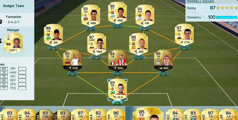 Habe jetzt 3-4-2-1, obwohl mir diese Aufstellung nicht optimal liegt. Aber ich möchte die 3 inform CBs spielen lassen, Bale und Neymar außen und vorne natürlich MEssi, CR7 und Suarez auf den "korrekten" Positionen. Sowas wie Hero Ronaldo wäre natürlich noch fantastisch, aber ich habe dieses FIFA genug Geld ausgegeben. Vorerst