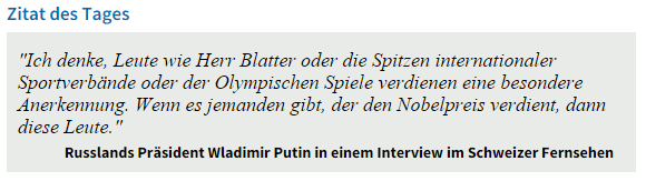 Wladimir #Putin fordert den (Friedens-)Nobelpreis für @SeppBlatter et al. - für uns eindeutig das Zitat des Tages