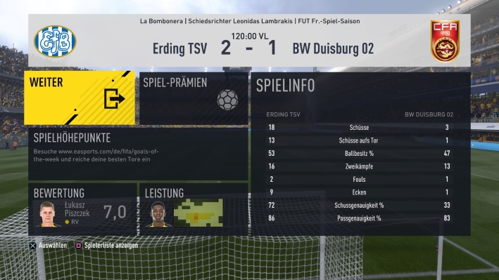 Hochverdienter Sieg für cheax81, das Ergebnis täuscht über den wahren Spielverlauf, achtet nur mal auf die Schusstatistik. Bin lange nicht mehr dermaßen chancenlos gewesen.