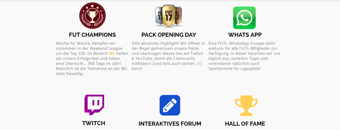 wurde ins Leben gerufen. Die Seite ist nun nahezu fertig (ist zudem Handy- und Tabletoptimiert). Ich suche hier also die Zocker unter euch, die fleißig FUT spielen, einen guten Umgangston pflegen und somit auch an einer lustigen Gemeinschaft interessiert sind und keine Liga-Hopper sind. Alle weiteren Highlights der Liga findet ihr auf der Page unter „ÜBER UNS“.