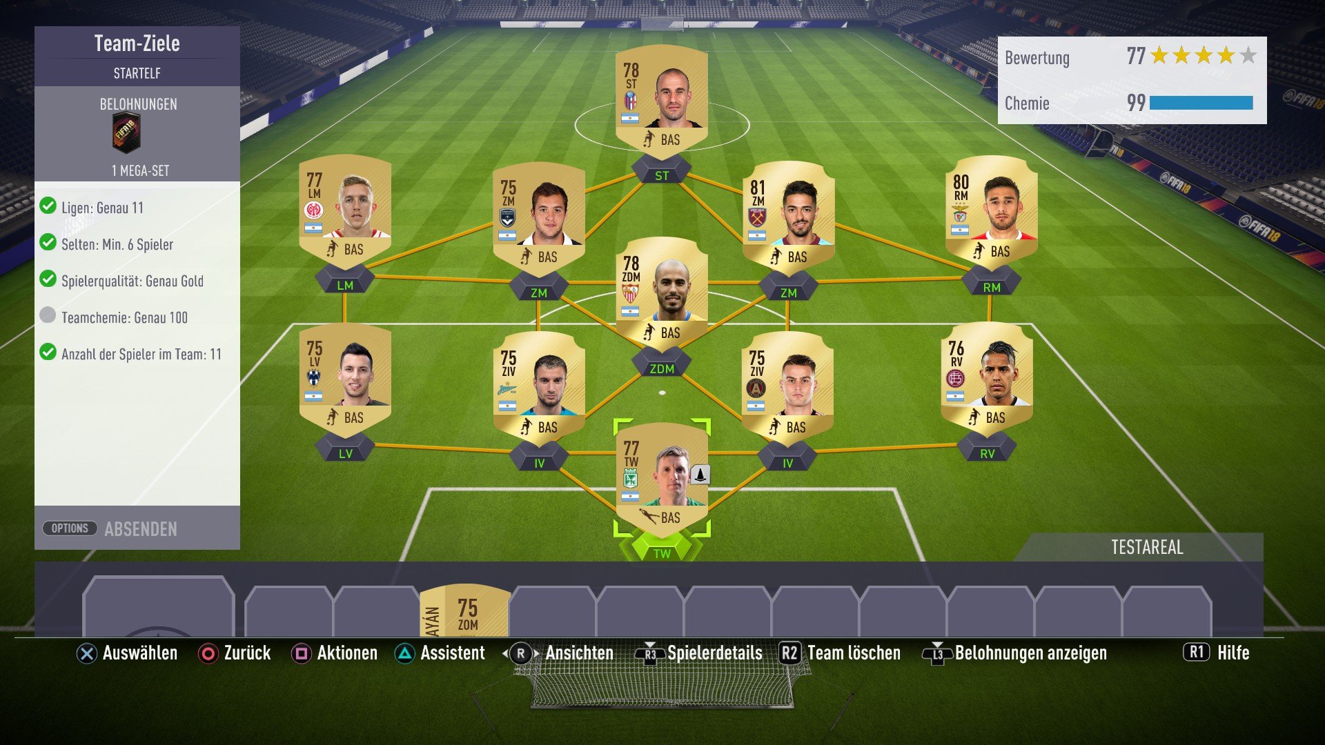 Ich habe mich heute an der Herausforderung "Team-Ziele" versucht und soweit alles richtig zusammen gestellt, dennoch hängt die Team Chemie bei 99 wodurch ich die Herausforderung nicht abschließen kann :/