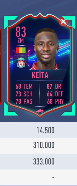 Seit Wochen findet zumindest auf dem PC Transfermarkt ein reger Handel mit Keita OTWs statt. Täglich werden dabei Dutzende dieser Karten (und das sind nur die, die ich sehe) für mehrere Hunderttausend Coins das Stück verschoben. Die normale Handelsspanne der Karte liegt quasi täglich zwischen ~39k und ~55k. Man darf davon ausgehen, dass die Volatilität des normalen Handels so hoch ist, weil eben der Cointransfer stattfindet. Das führt logischerweise zu diesen Schwankungen.