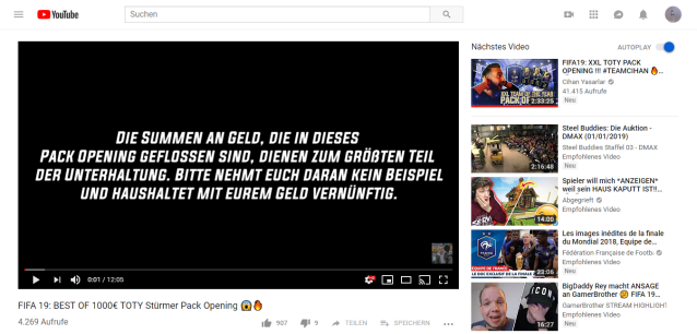 Passend zum Thema das Eröffnungsbild dieses YouTubers Gamerbrother bei dem gerade erschienen Beitrag - wird auch ein paar Sekunden lang eingeblendet - immerhin: | | | 08.01.2019, 14:23 |