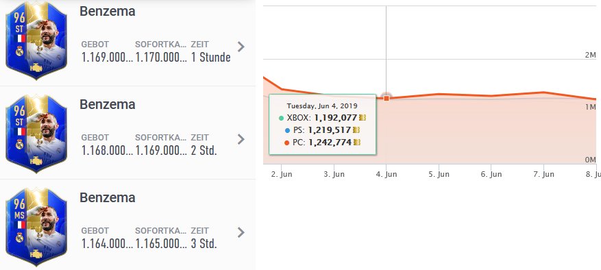 Ganz im Gegenteil sogar, während die Spieler sonst gestiegen sind, wenn die nächste Liga dran war, sind Ben Yedder und Benzema gestern so günstig wie nie zuvor.