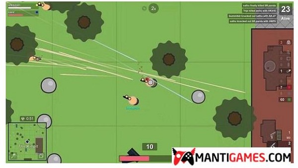 This incredibly fun 2D BR game will help you see yourself dodging bullets. Just fight for success and loots in the gameplay. In the game, you may be just a single circle, but remember to turn the circle into the most powerful circle in the battle. This is one of the best online games in browser at Manti Games.