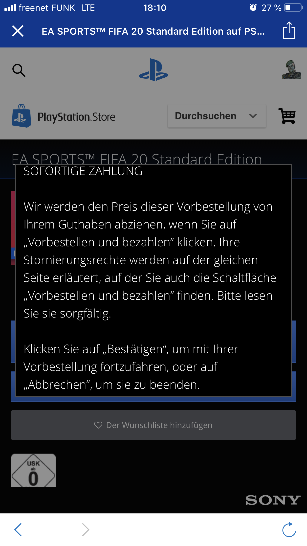 Scheint über die PS App nicht zu gehen. Der will dann des Game vorbestellen.