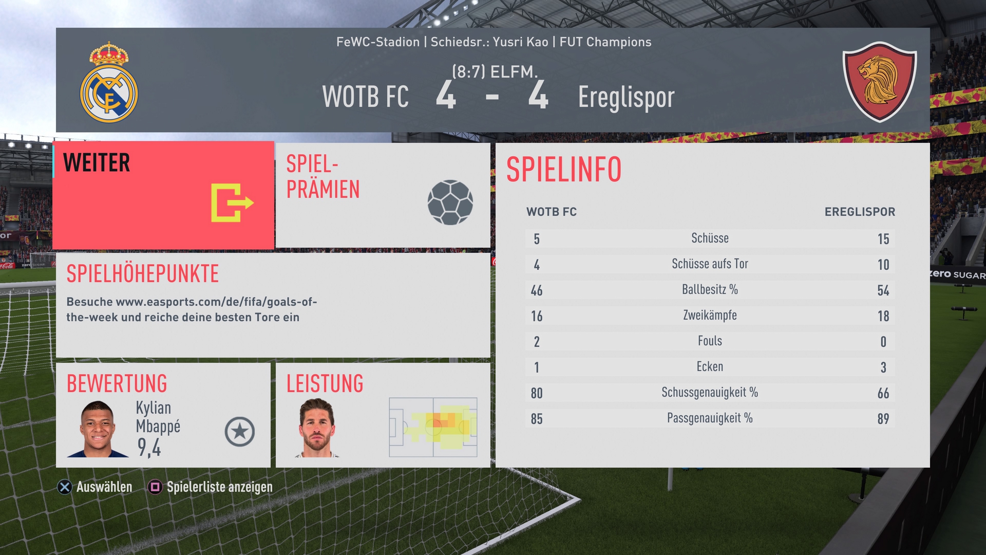 Meine Statistik ist 608-63-302. Bei knapp 1000 Spielen, so wenig Remis? Weil das Spiel einen zu bestimmten Sachen zwingt. Entweder spielst du dich durch wie Barca Tiki Taka von früher, oder kannst die Spieler kaum steuern und vollgeladene Balken Bälle, fliegen 1 Meter weit direkt auf den Gegner.