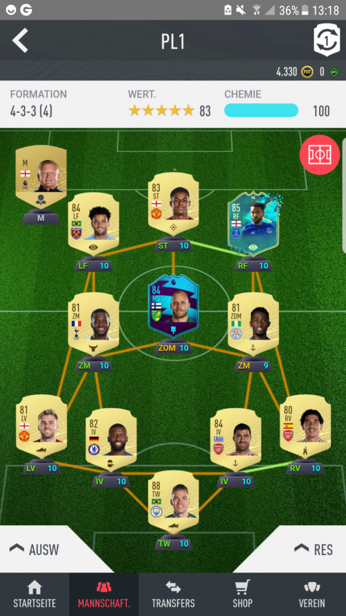 Heute bei den Rewards wurde prompt Rashford gezogen und mein Kumpel bat mich, für Ihn ein Premier League team aufzubauen. Daher passte das ganz gut. Da auch Walcott schon hinzugestoßen ist, wurden alle möglichen Coins (nicht gerade viele) aus dem Verein rausgeholt um ein halbwegs schlagkräftiges Team zu bilden.