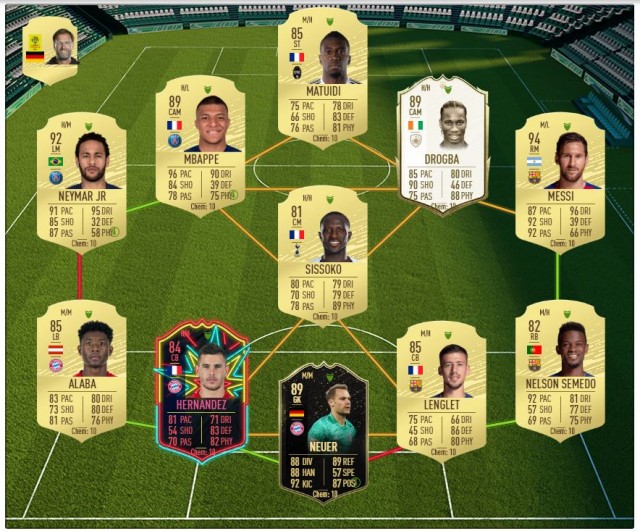 Ich bin mit meiner Offensive (bis auf Drogba, den muss ich noch spielen), absolut zufrieden. In der IV bereit mir Hernandez noch Kopfzerbrechen. Er ist manchmal echt gut, aber manchmal verursacht der auch Situationen und Gegentore, wo ich ihn am liebsten discarden möchte. Lenglet wird meiner Meinung nach auch dem Preis nicht gerecht, ist aber eine solide Karte. Der beste IV für mich bleibt bisher Süle. Semedo und Alaba sind über alle Zweifel erhaben und würde ich so wieder kaufen.