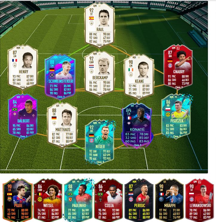 Henry - die Überraschung der WL, hatte ihn in nem Icon-Base Pack gezogen und mich geärgert, weil ich Mbappe in Rot habe, allerdings spielte er wegen Dalbert und was soll ich sagen, er wird weiter in der Startelf stehen. Er schießt Tore, bereitet vor, erobert Bälle und treibt mein Spiel unermüdlich an.