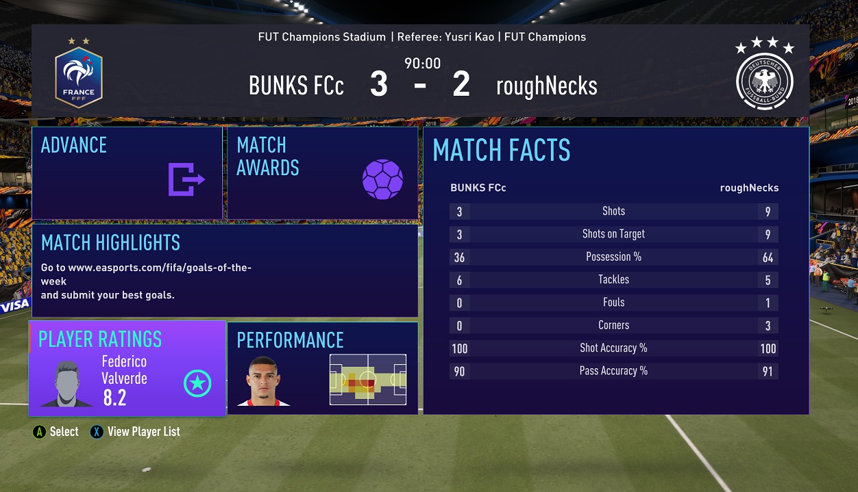Mein letzter Gegner: Allison - Trent AA, van Dijk, Varane, Mendy - Kante, ICON Ballack - Mane, Neymar, ICON Ronaldinho - Mbappe. Auf PC wo du dich für nichts qualifizieren kannst.