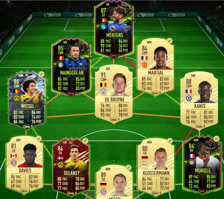 Laimer, der letzte Woche noch mit 8 Chem in meiner RV stand wird durch den dritten Liverpool-Spieler ersetzt, Alexander-Arnold TOTY steht hier nun. https://www.futbin.com/21/squad/6146474