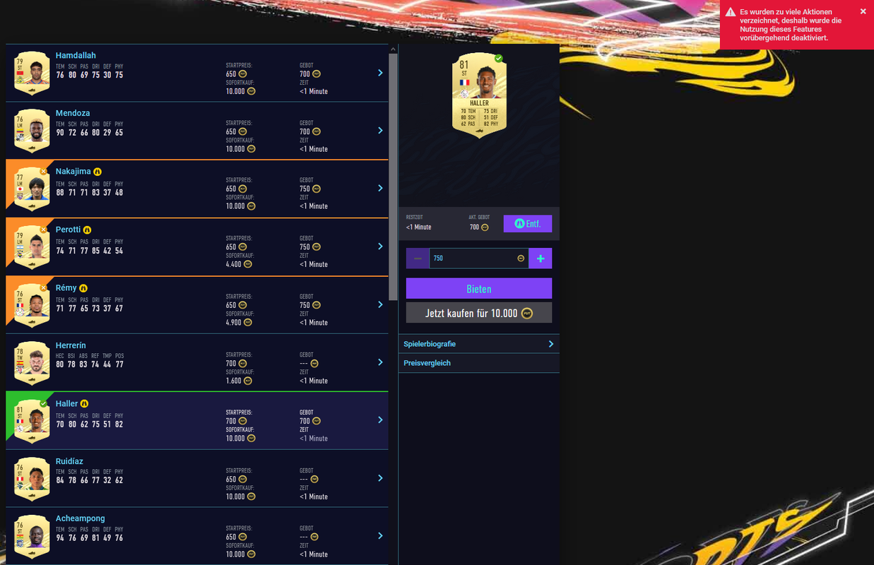 Wenn es einen Grund dafür gibt, z.B. durch ein TOTW-Upgrade für den Spieler, oder eine Spezialkarte mit gutem Link, geht der Kurs auch wieder nach oben.