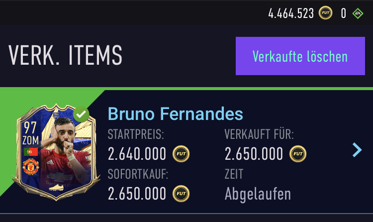 Der Bruno Fernandes TOTY der letzte Woche für 2,65m wegging ist für 2,38m wieder im Team gelandet und aktuell mit 2,65m das günstigste Angebot auf dem PC Markt