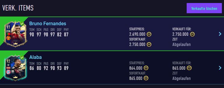 Schon komisch... Die wertvollste tradeable Karte die ich dieses Jahr gezogen habe hat mir 500k gebracht. Dann lange nichts und dann kommen so 100k Karten. Wirklich wirklich mau dieses Jahr. | Ich hab leider so viel Miese gemacht (Stand jetzt) mit den ganzen high rated Spielern die ich nun seit Wochen auf der TL habe, dass ich einfach noch hoffe, das irgendwie noch was kommt, was zumindest ne 0 verursacht wenn ich die verkaufe.