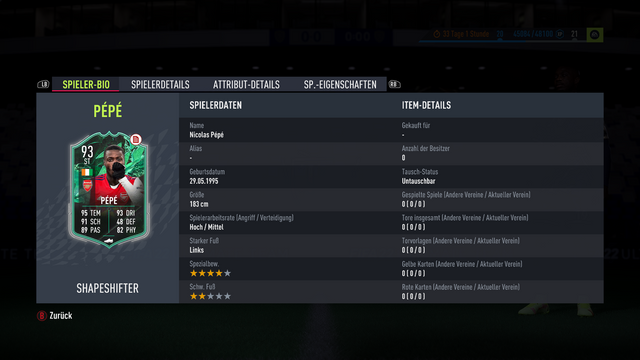Pepe Aufgabenspieler wird der WF nicht korrekt bei den Aufgaben angezeigt, bei der Karte an sich hat er 4* WF und andere Workrates.  | Das Problem gibt es allerdings schon seit Monaten. Bei objective Spielern wird immer der basekarten sternewert angezeigt bis man die Karte hat oder in concepts guckt.