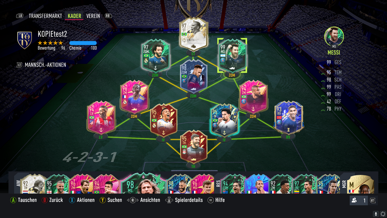 Viel geht nicht mehr. Maximin gefällt mir nicht so gut wie erhofft aber ist ok.ribery ist eine Granate.bei varane hatte ich befürchtet das die Beweglichkeit zu schlecht ist aber er ist der beste IV.im großen und ganzen kann ich alle empfehlen. Auch cordoba ist ne macht.bester rv im Spiel. Könnte auch noch neymar machen