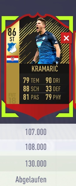 Man beachte, die ausgefeilte Technik des Bietens: Starpreis 124k, Sofortkaufpreis 130k. Aber die Karte geht am Ende für 125k weg. Ich vermute, dass derartige Preis-Konstellationen versteckte Hinweise an Personen sein können, die bei EA sitzen und den Cointransfer eigentlich unterbinden müssen. So ein Signal bedeutet dann: Hier jetzt nichts machen. Ich bin ein befreundeter Münzhändler.